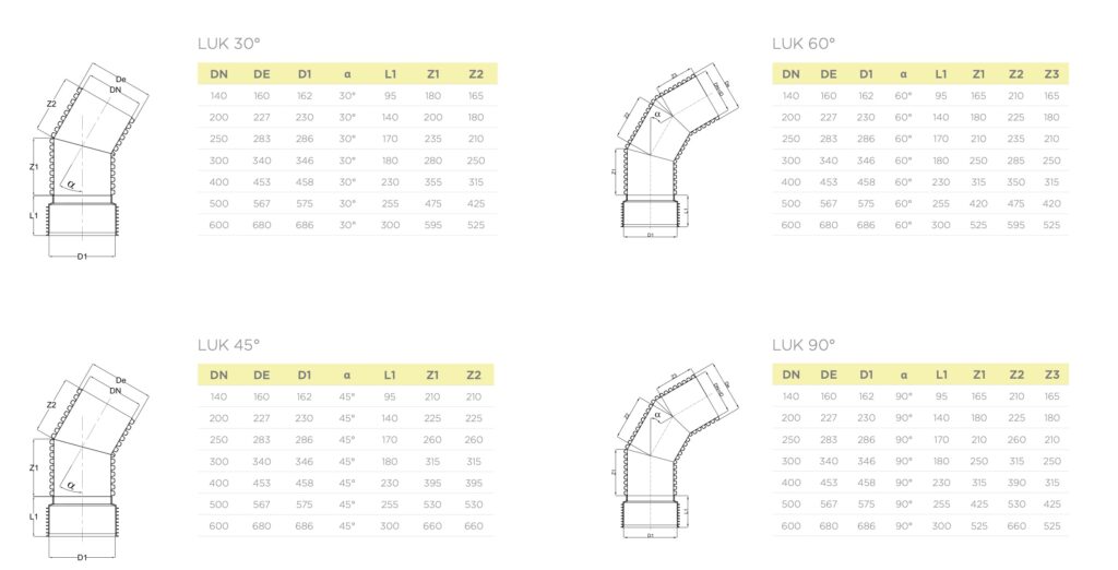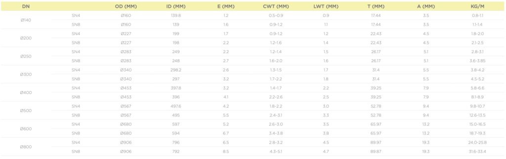 Mogu se raditi u rasponu od Ø140 do Ø800, prstenaste krutosti SN 4 i SN 8 (po zahtevu i veće čvrstoće).